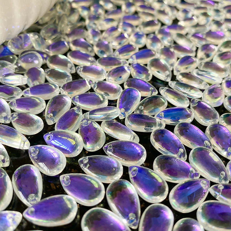 012-Glazed beads 8 * 14mm water drop pendant flat water drop DIY jewelry accessories hole material loose beads antique versatile